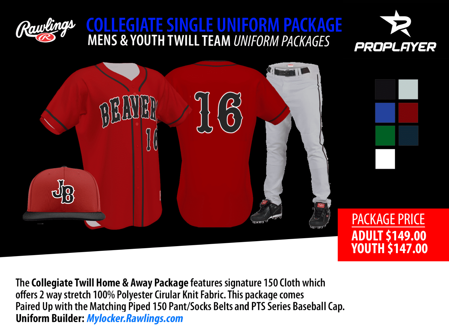 RAWLINGS COLLEGIATE TWILL TEAM UNIFORM PACKAGE